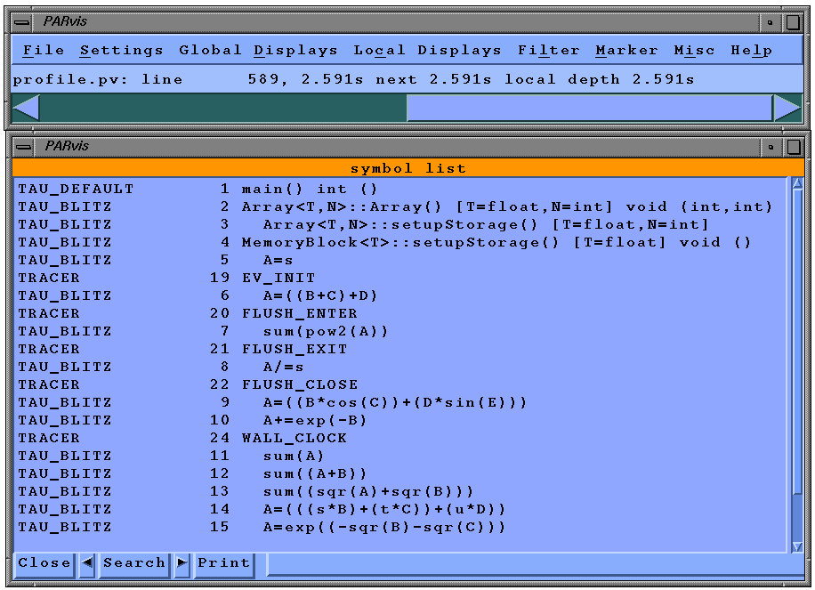 Blitz++ program traced with TAU and visualized using VAMPIR